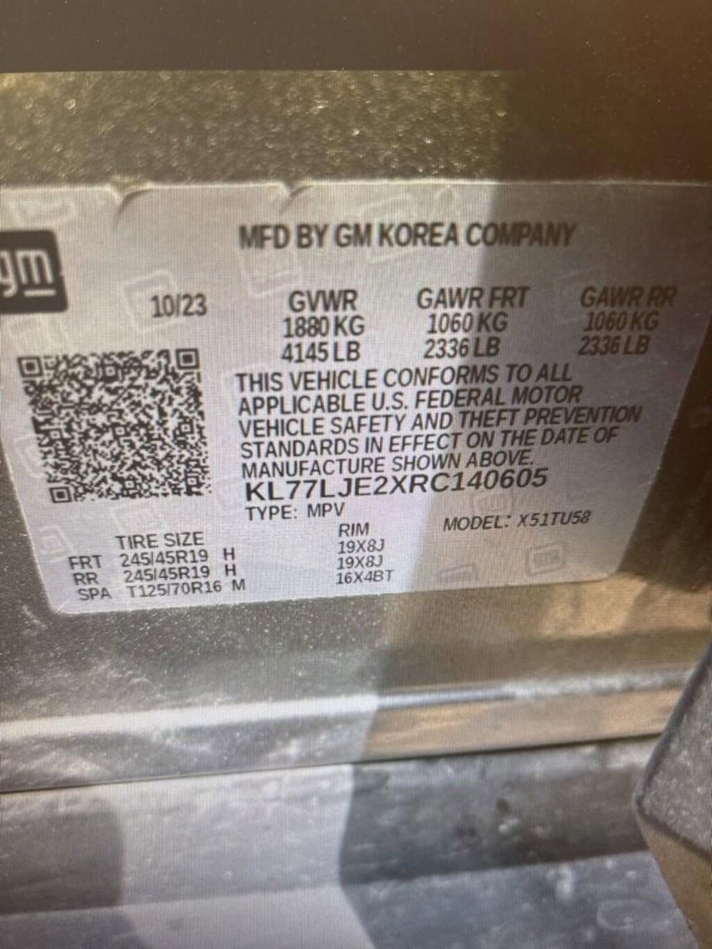 • Front tires: 245/45HR19.0