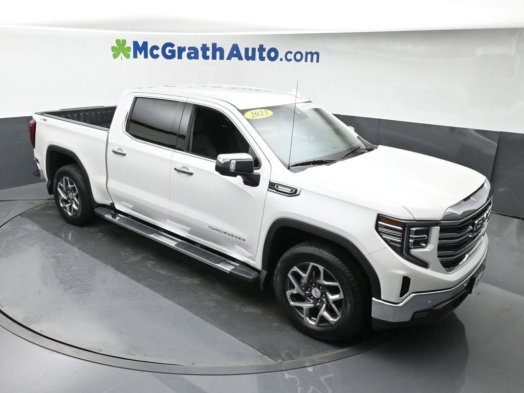 SLT PREMIUM PLUS PACKAGE includes (PCY) SLT Convenience Package, (PDY) SLT Preferred Package, (PED) Sierra Safety Plus Package, (ZL6) ProGrade Trailering system, (NZD) 20" Polished aluminum wheels, (BVT) Chrome assist steps and (CGN) spray-on bedliner., SLT PREFERRED PACKAGE Includes (KSG) Adaptive Cruise Control, (A48) rear sliding power window, (UG1) Universal Home Remote and (KA6) heated second row outboard seats, SLT CONVENIENCE PACKAGE includes (A50) bucket seats with (D07) center console, (KQV) ventilated front seats, (K4C) Wireless Charging, (UQA) Bose Premium Audio System, (N38) Power Rake/ Telescoping steering column and (UBC) USB ports, 2 (first row) Charge and Data ports located inside armrest Beginning October 26, 2022 through November 20, 2022, certain vehicles will be forced to include (00C) Not Equipped with Wireless Charging, which removes Wireless Charging. See dealer for details or the window label for the features on a specific vehicle.), SIERRA SAFETY PLUS PACKAGE includes (UFB) Rear Cross Traffic Braking, (UKK) Rear Pedestrian Alert, (TRG) Trailer Camera Provisions, (UKV) Trailer Side Blind Zone Alert and (UV2) HD Surround Vision Certain vehicles built prior to 7-11-22 may be forced to include (00Z) Not Equipped with Front and Rear Park Assist, which removes Front and Rear Park Assist. See dealer for details or the window label for the features on a specific vehicle. Vehicles built on or after 7-11-22 will include (UD5) Front and Rear Park assist. Includes (UD5) Front and Rear Park Assist, and (HS1) Safety Alert Seat., FRONT AND REAR PARK ASSIST, ULTRASONIC (Certain vehicles built prior to 7-11-22 may be forced to include (00Z) Not Equipped with Front and Rear Park Assist, which removes Front and Rear Park Assist. See dealer for details or the window label for the features on a specific vehicle. Vehicles built on or after 7-11-22 that include (PED) Sierra Safety Plus Package will include (UD5) Front and Rear Park assist.) , WHEELS, 20" POLISHED ALUMINUM WHEELS with technical gray painted accents, USB PORTS, 2, CHARGE/DATA PORTS LOCATED INSIDE CENTER CONSOLE, UNIVERSAL HOME REMOTE, TRANSMISSION, 10-SPEED AUTOMATIC WITH ELECTRONIC PRECISION SHIFT, ELECTRONICALLY CONTROLLED with overdrive, tow/haul mode and steering column paddle shifters. Includes Cruise Grade Braking and Powertrain Grade Braking, TRANSFER CASE, TWO-SPEED, ELECTRONIC AUTOTRAC with push button control.